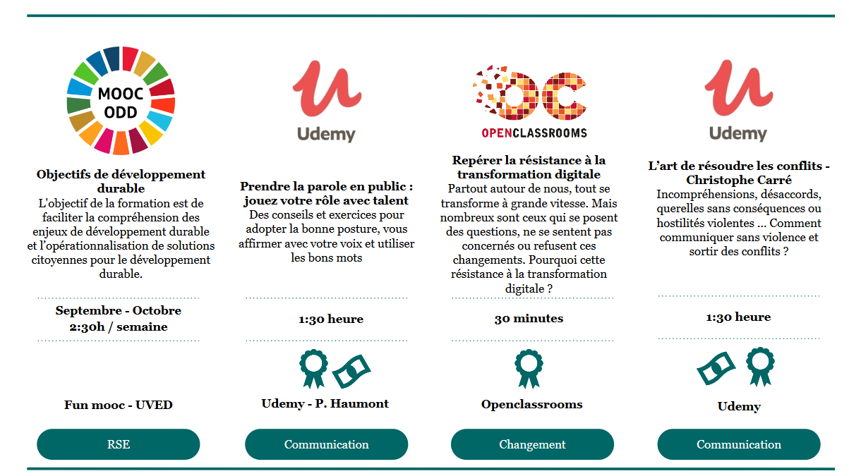 Les Moocs répondent aux nouvelles tendances de formation en entreprise. Le terme Moocs est un anagramme pour « Massive Open Online Courses » qui se traduit en français par cours en ligne ouverts et massifs. Selon le Larousse, il s'agit de « formations dispensées sur Internet et accessible à tous ».